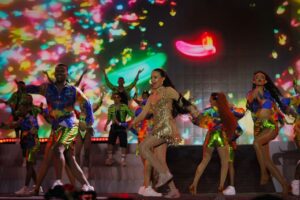 El evento se convirtió en un espectáculo inolvidable gracias a una puesta en escena de gran formato, en la que más de 700 bailarines rindieron tributo a las raíces culturales del Carnaval de Barranquilla. Danzas tradicionales, expresiones folclóricas y una narrativa escénica que exaltó la identidad caribeña fueron el hilo conductor de una noche que emocionó a propios y visitantes.