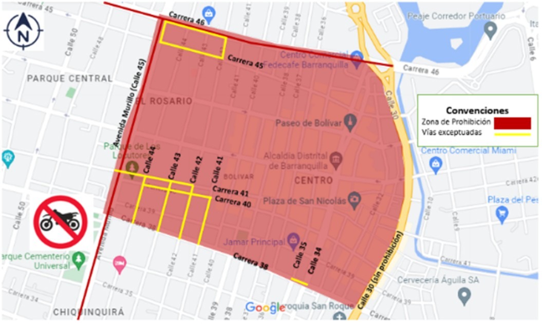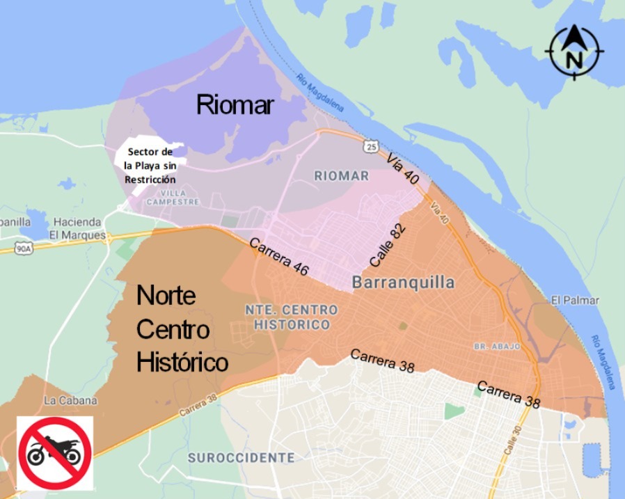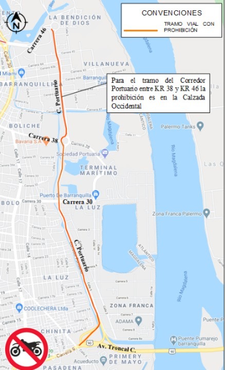 De igual manera, continúa la prohibición total en las vías donde circula Transmetro, como la calle 45 (Murillo) y la carrera 46, y en el corredor portuario, salvo para vehículos en funciones especiales como escoltas de carga o valores.