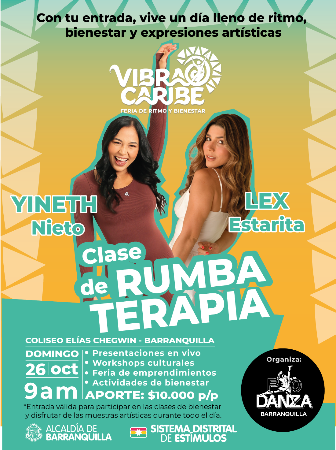 La feria se realizará el domingo 26 de octubre en el Coliseo Elías Chegwin, desde las 9:00 de la mañana hasta las 4:00 de la tarde, con una programación continua que combina presentaciones artísticas, clases abiertas de bienestar y espacios lúdicos. Será una jornada para reconectarse con el cuerpo, la música y la esencia caribeña.