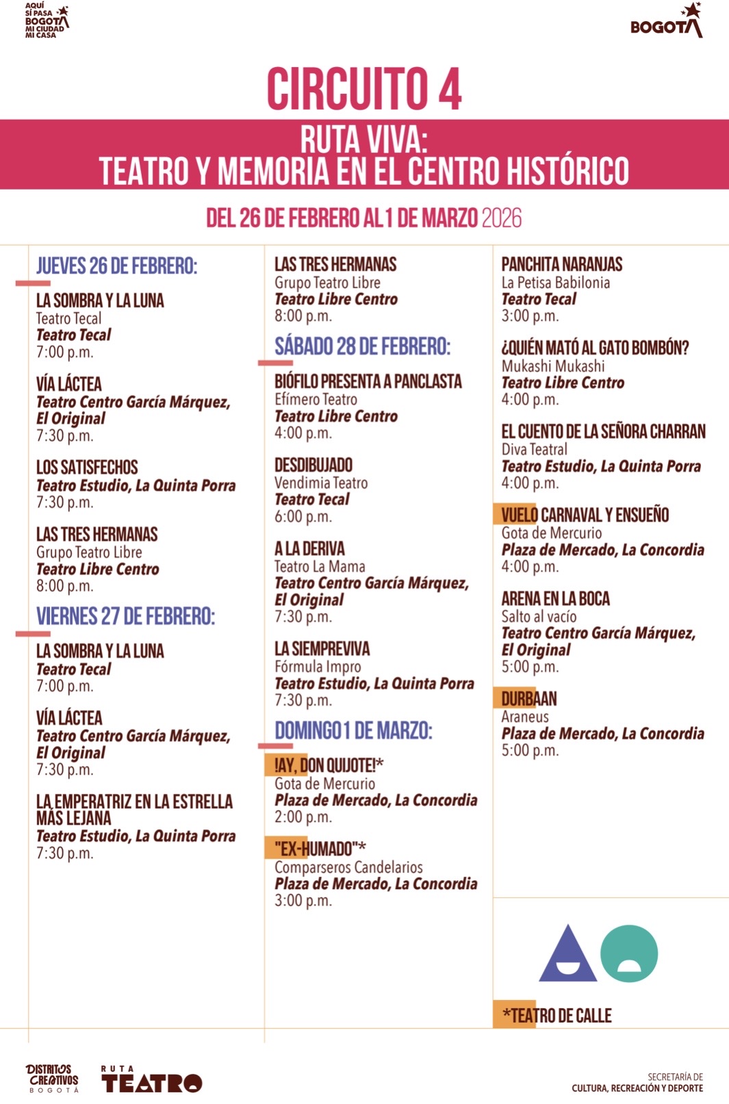 Con esta apuesta, el Distrito reafirma su compromiso con el fortalecimiento de las artes escénicas, la circulación de creadores locales y la consolidación de Bogotá como una ciudad creativa, diversa y culturalmente activa.