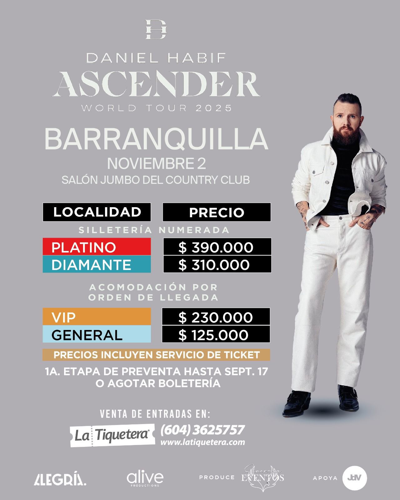 La ciudad de Barranquilla recibirá el próximo 2 de noviembre a Daniel Habif, uno de los conferencistas más influyentes del mundo, quien presentará su esperado ASCENDER World Tour 2025. El evento, catalogado como una experiencia transformadora, se realizará en el Salón Jumbo del Country Club, donde se espera una masiva asistencia de seguidores y público en general.