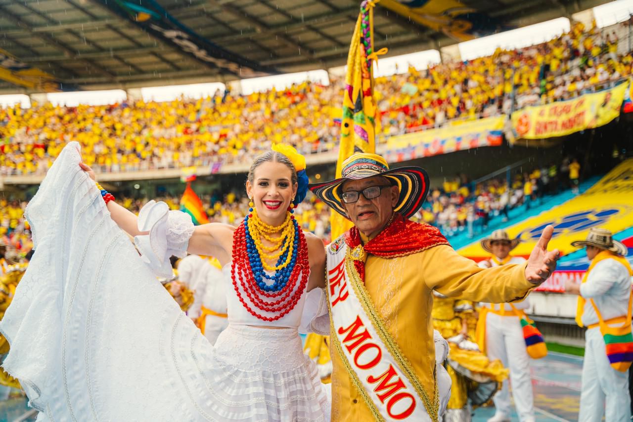 En una delegación liderada por los Reyes del Carnaval de Barranquilla 2025, Tatiana Angulo Fernández De Castro y Gabriel Marriaga Tejada, más de 200 hacedores del Carnaval hicieron vibrar el Estadio Metropolitano con la alegría de la Fiesta barranquillera Patrimonio de la Humanidad.