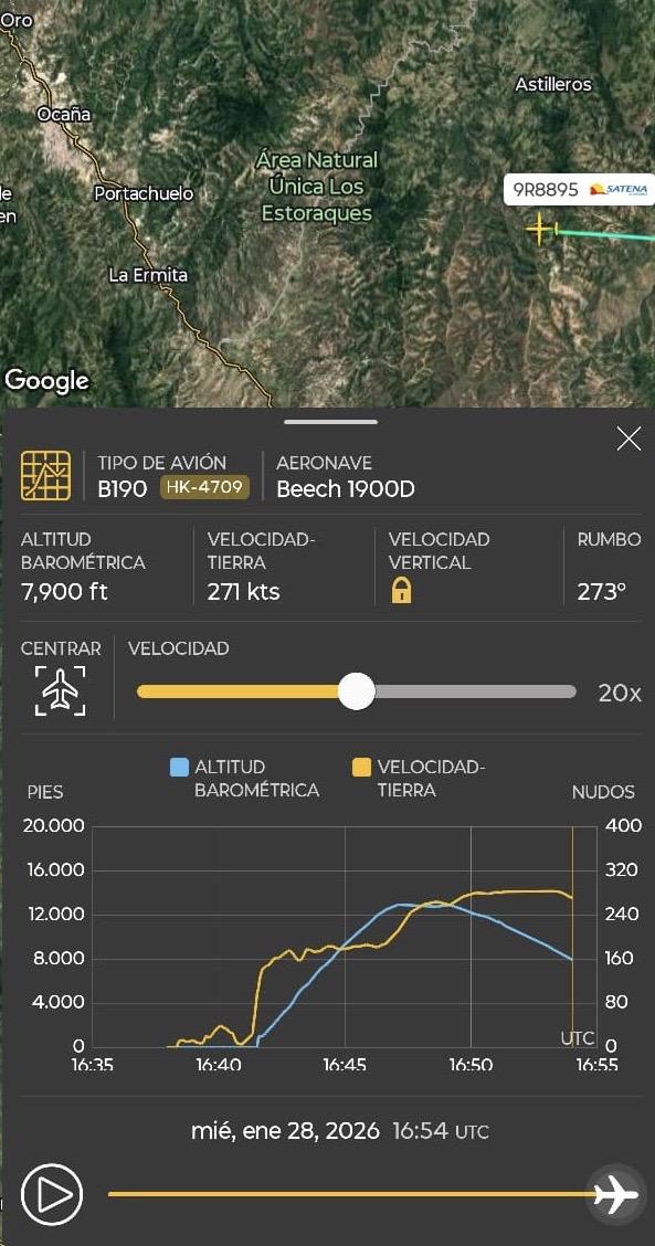 De acuerdo con información oficial, la aeronave, un Beech 1900D, despegó del aeropuerto Camilo Daza de Cúcuta sobre las 11:42 P.M, con destino al municipio de Ocaña. Minutos después de iniciar su trayecto, se perdió toda comunicación cuando sobrevolaba una zona montañosa del Catatumbo, caracterizada por su compleja geografía y condiciones climáticas variables.
