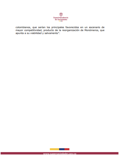 Según el fallo, la medida de reorganización busca evitar el colapso de Monómeros y asegurar su continuidad en el mercado. La decisión respalda el papel de la Superintendencia en la supervisión de empresas en crisis, enfatizando que el proceso no constituye una violación de derechos, sino una herramienta de recuperación empresarial.