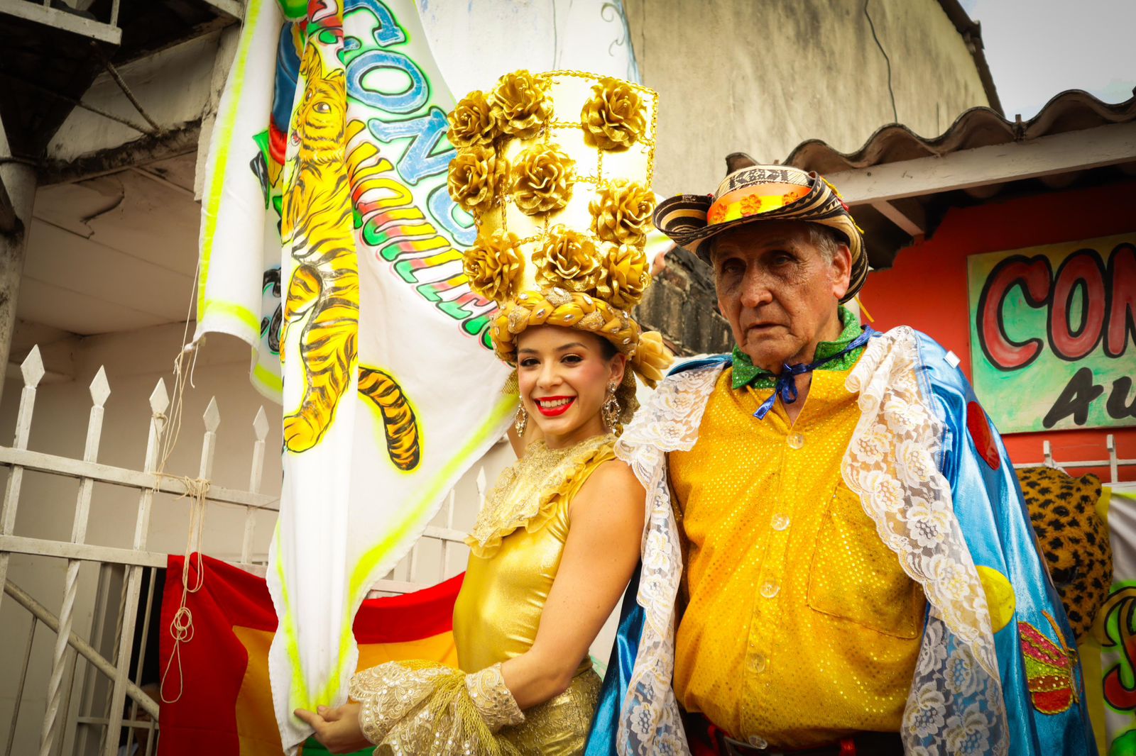 La jornada comenzó en Rebolo, uno de los barrios más carnavaleros de la ciudad, donde la familia Guell celebró su legado y enarboló con orgullo la bandera del Congo Barranquillero, respondiendo al unísono el verso: ¡Viva la camisa amarilla!