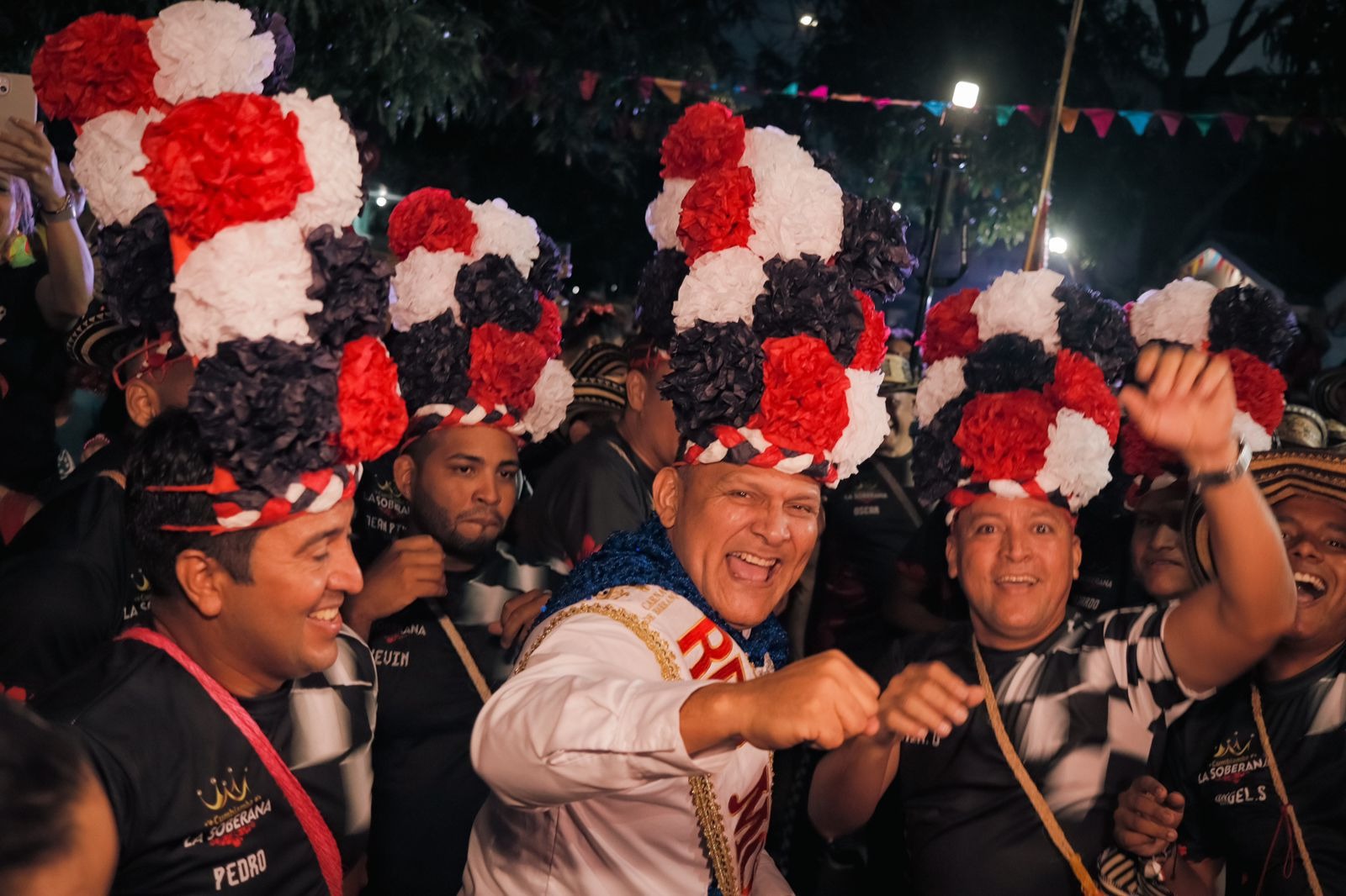 Durante la noche, agrupaciones como La Revoltosa, La Soberana, Negritas Puloy de Montecristo, La Currambera, El Cañonazo, La Gigantona y El Gallo Giro elevaron sus banderas como acto de orgullo y pertenencia, renovando el compromiso con la tradición y con la historia que cada una representa dentro del Carnaval. En cada izada se respiró el legado de generaciones que han mantenido vivas las danzas, los ritmos y las expresiones culturales que nacen en los barrios.