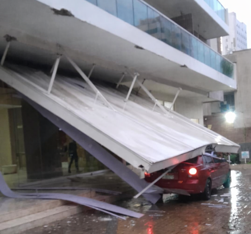 Las intensas precipitaciones que se registraron en las últimas horas en Barranquilla ocasionaron la caída de parte de la estructura exterior del edificio Viscayne, situado en la carrera 51 con calle 80, en el norte de la ciudad. El desprendimiento de la cubierta metálica terminó impactando un vehículo que se encontraba estacionado frente al inmueble.