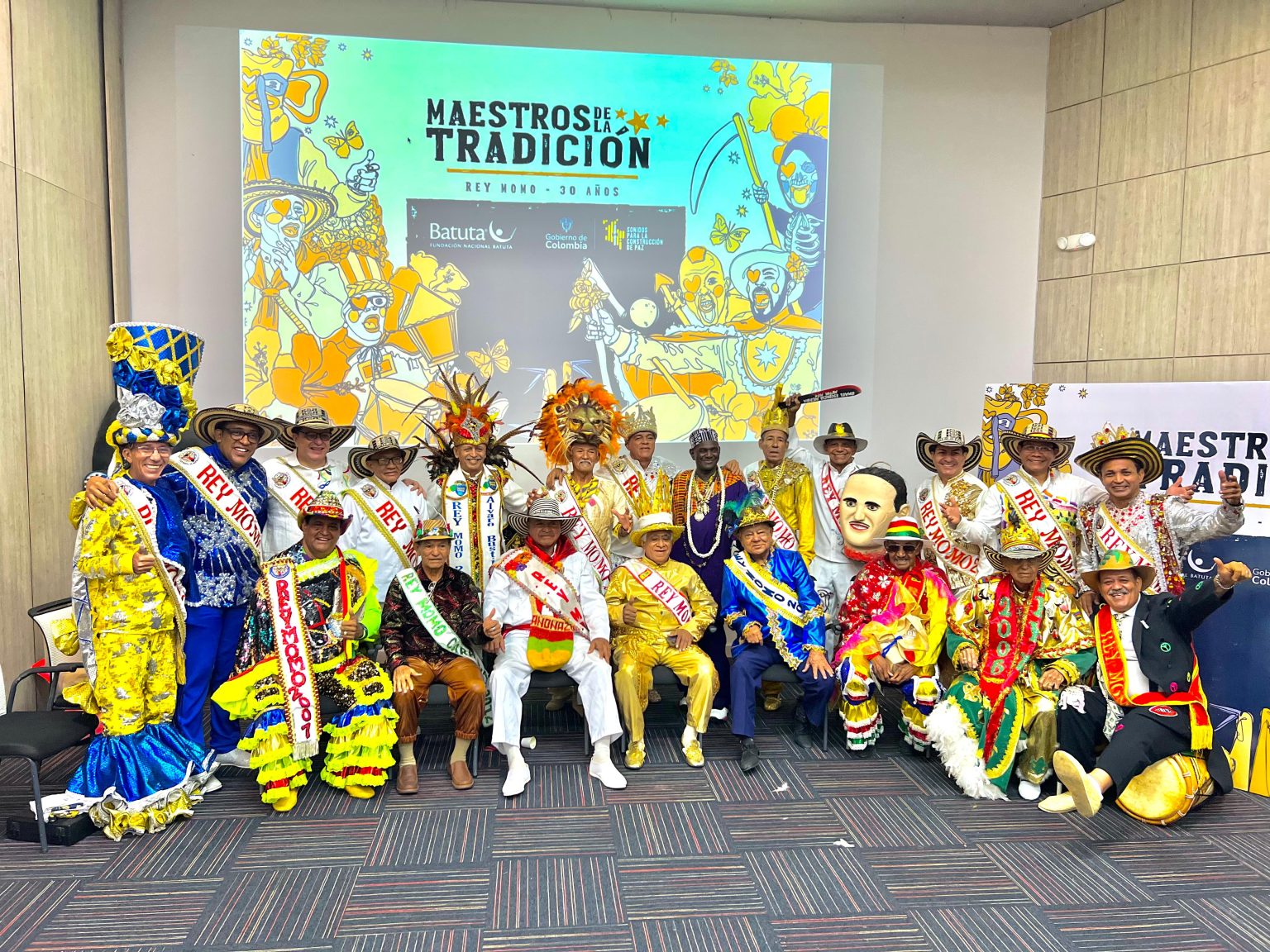El primer Encuentro de Grandes Maestros de la Tradición del Carnaval de Barranquilla reunió a 21 de los 23 Reyes Momos aún vivos en una jornada de dos días, centrada en escuchar sus voces y conocimientos, así como en trabajar para establecer las bases de una política pública festiva para Colombia.