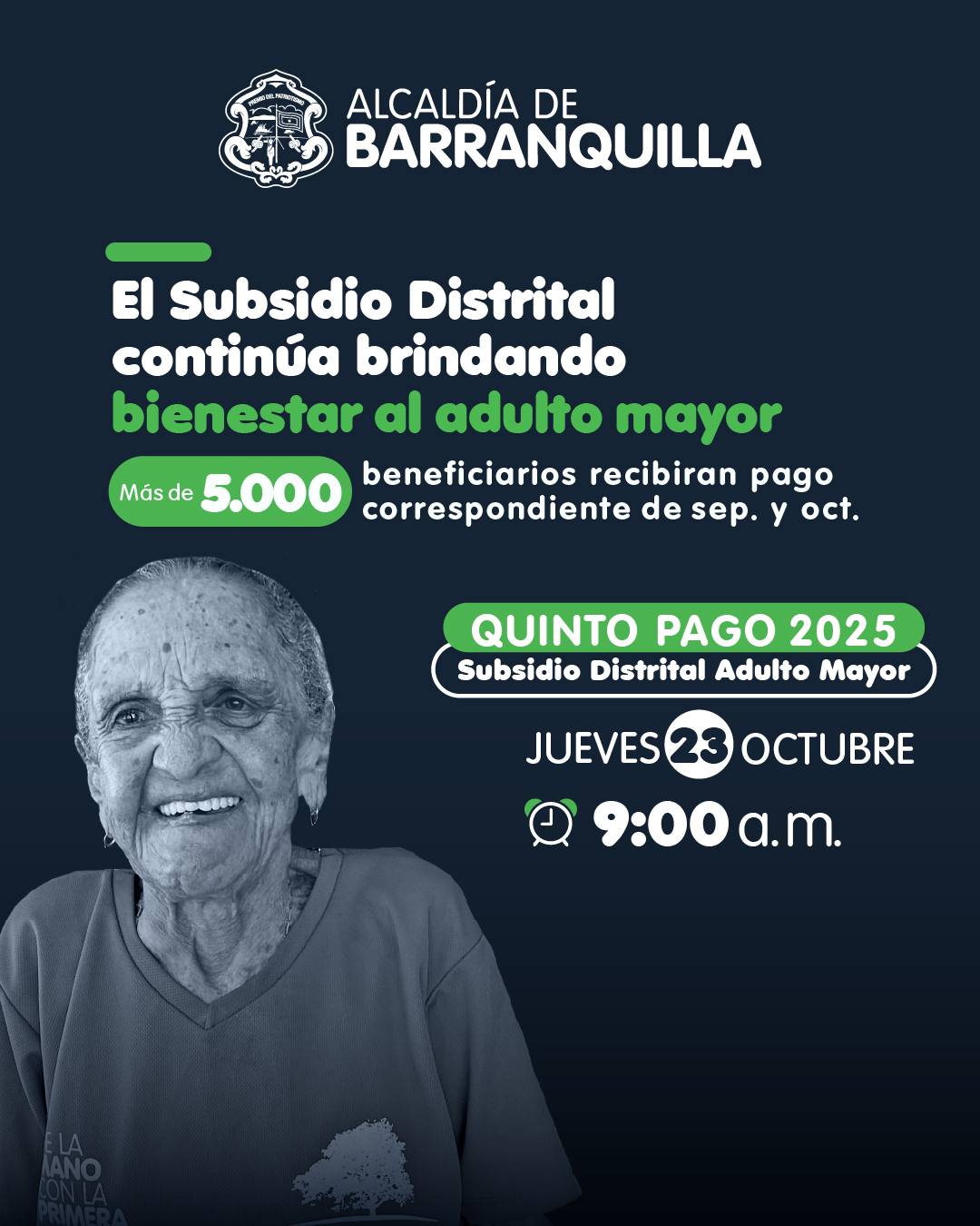 El Distrito de Barranquilla inició este jueves 23 de octubre la entrega del quinto pago del Subsidio Distrital 2025, correspondiente al bimestre septiembre-octubre, beneficiando a 5.075 adultos mayores en toda la ciudad. Los pagos estarán disponibles hasta el 8 de noviembre en los 92 puntos de Efecty habilitados.