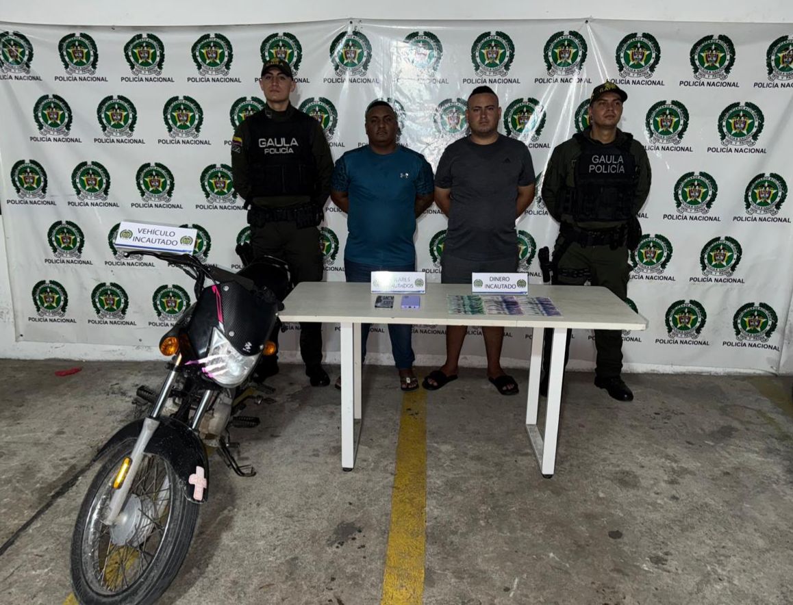 En el barrio Las Nieves fueron capturados dos presuntos integrantes del Grupo Delincuencial Común Organizado (GDCO) “Los Costeños”, señalados de liderar extorsiones contra comerciantes en los sectores de La Magdalena y Simón Bolívar. Según las investigaciones, estos individuos grababan videos intimidatorios y distribuían panfletos amenazantes para obligar a las víctimas a pagar sumas que iniciaban en los 60 millones de pesos. Incluso se les atribuye la quema de la fachada de un local de venta de colchones como método de presión. Durante el operativo se incautaron $1.700.000 en efectivo, presuntamente producto de las exigencias, una motocicleta y dos teléfonos celulares.