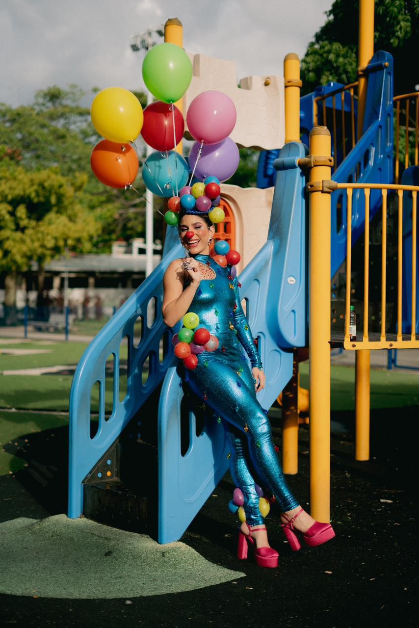 Para complementar este homenaje, la Reina del Carnaval Arrebatao lucirá durante la celebración de Halloween un disfraz de payaso estilizado , diseñado por Kenn Kozz, donde los colores vibrantes, los accesorios en bolas de plástico reutilizables y las lágrimas de acrílico son los protagonistas. “La inspiración sin duda fueron todas las fotografías de los disfraces de ‘Cara Sucia’, donde predominan los colores y los estampados de bolas”, afirmó el diseñador de modas.