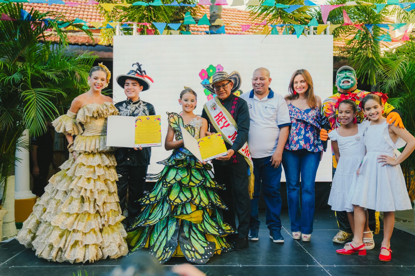 En una tarde vibrante, los nuevos soberanos recibieron los decretos que los acreditan como líderes de esta celebración, acompañados por Tatiana Angulo Fernández, Reina del Carnaval de Barranquilla, y Gabriel Marriaga Tejada, Rey Momo 2025. Junto a ellos, figuras como el Secretario de Cultura, Juan Carlos Ospina, y la Primera Dama, Katia Nule, participaron en el simbólico acto de izar la bandera carnavalera en el icónico Barrio Abajo, epicentro de esta fiesta.