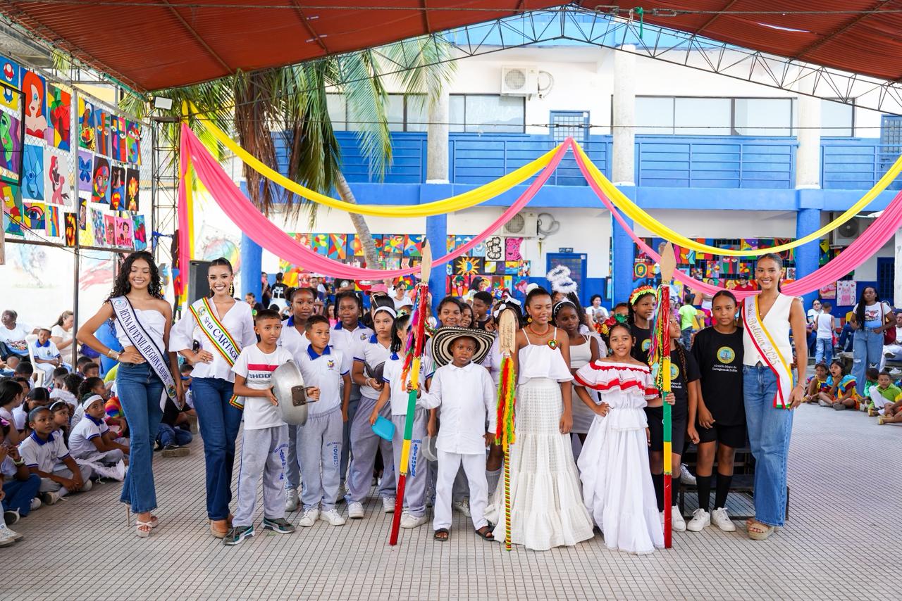 Cartagena vivió una jornada llena de alegría, música y cultura con la celebración de Ángeles Somos en la Institución Educativa José de la Vega, en el barrio Torices, donde los estudiantes compartieron con las representantes del Concurso Nacional de Belleza, María José Ayazo Alzamora, Señorita Bolívar, y María Paula Berrío Díaz, Señorita Cartagena – Distrito Turístico y Cultural.