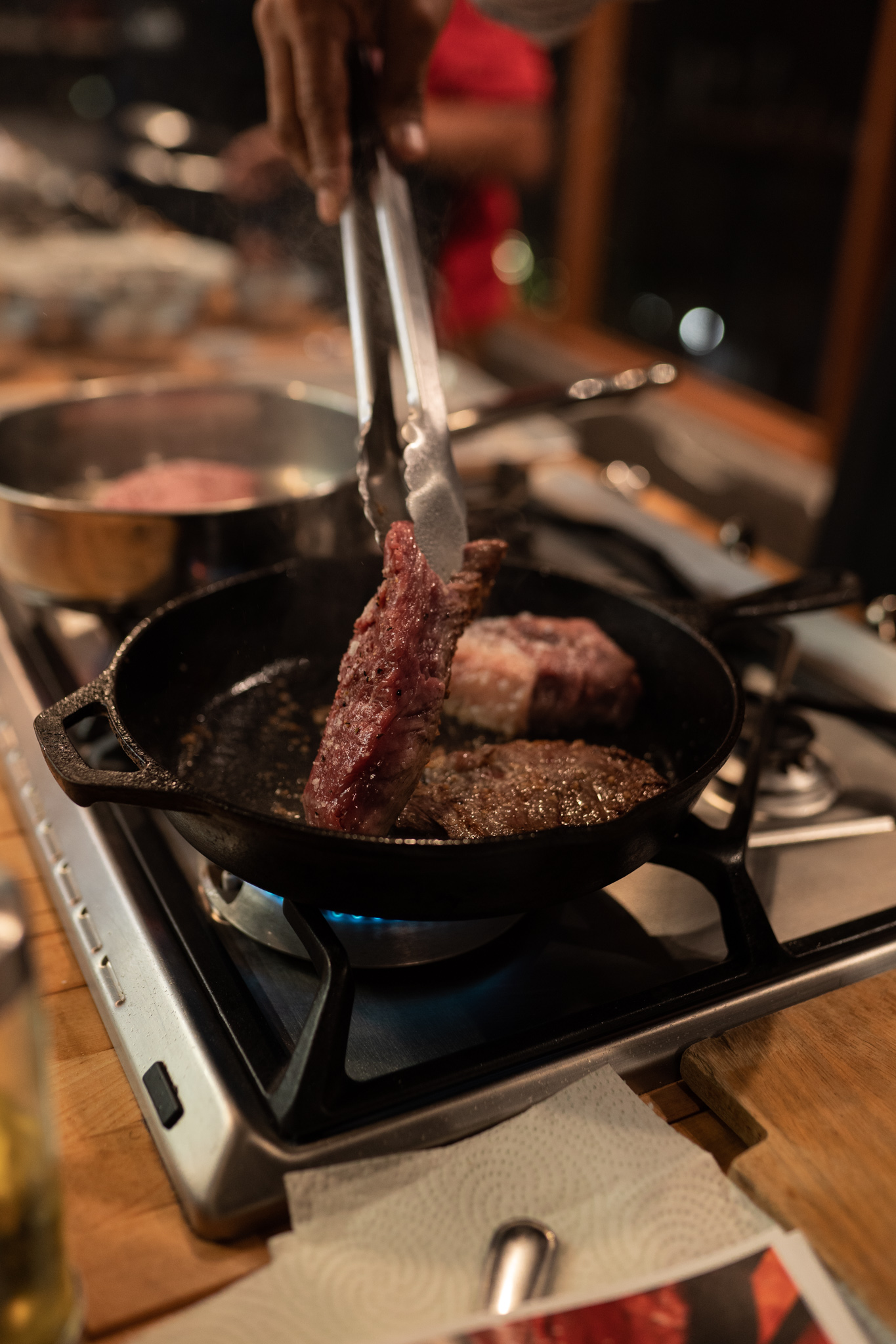 Uno de los aspectos más destacados de estas experiencias es la integración de menús diseñados para complementar la formación. A través de preparaciones como distintos tipos de steak, acompañamientos y maridajes, los asistentes no solo cocinan, sino que también entienden la relación entre el producto, la técnica y el resultado final en el plato.
