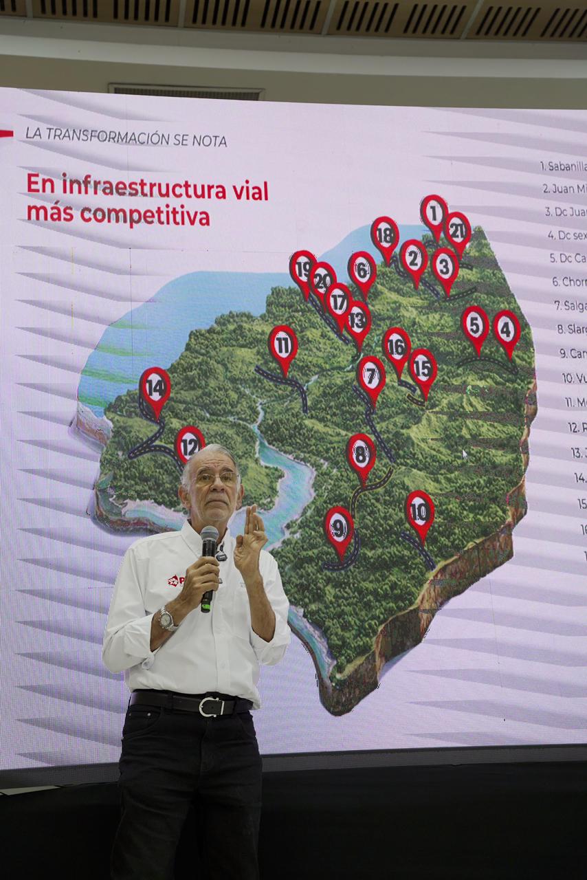El plan contempla la ejecución de cerca de 450 obras distribuidas en los 22 municipios del departamento. Entre las principales apuestas se destacan la rehabilitación de 400 kilómetros de vías, la construcción de 150 kilómetros adicionales y el desarrollo de dobles calzadas estratégicas como Juan Mina–Zona Franca–Puerto Colombia, Caracolí, Salgar–Usiacurí y Sabanalarga–Manatí. Estos corredores buscan dinamizar la economía, fortalecer el turismo y mejorar la logística para el sector productivo.