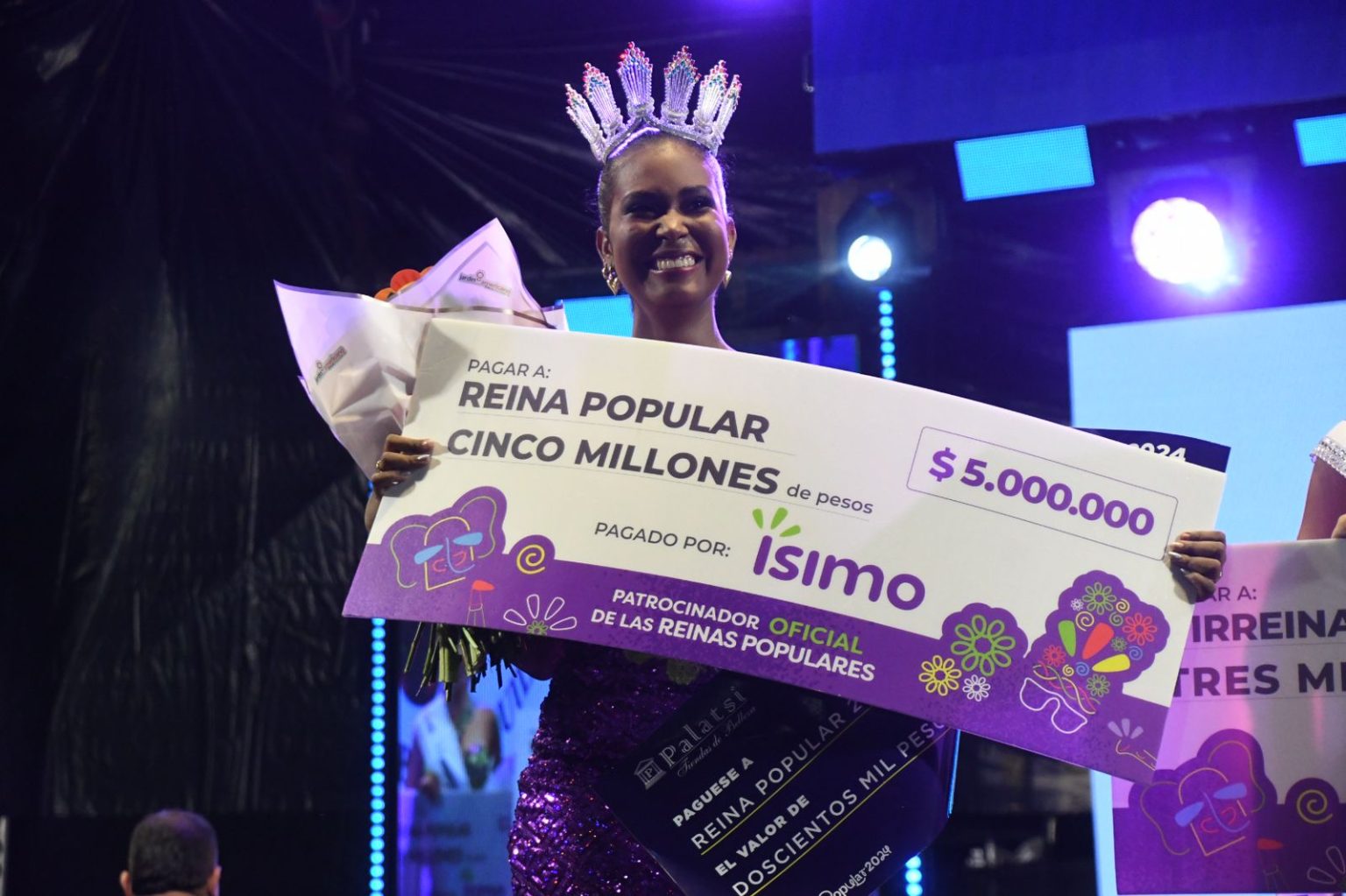La Reina Popular 2024, Hania Orozco, quien representó al barrio La Sierrita, es estudiante de Contaduría Pública de 22 años e integrante del grupo folclórico Afroraíces.